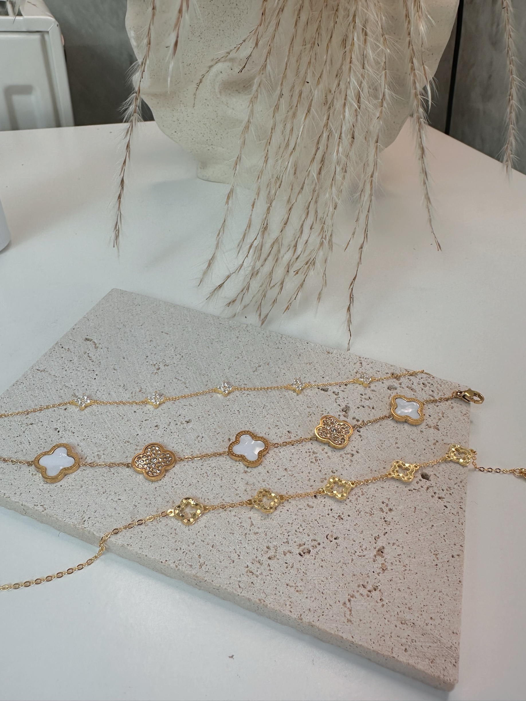 Size: 15+3cm Material: 18k Gold Plated Stainless Steel Color: Gold & White